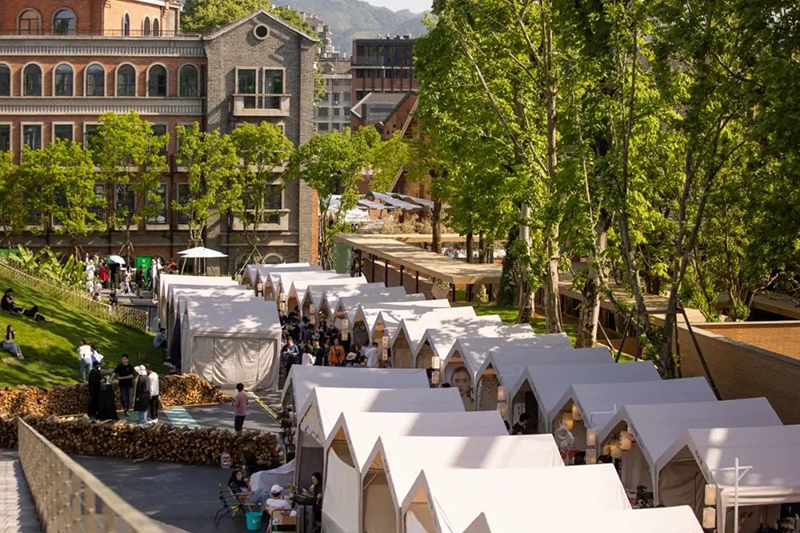 集市每周五、周六在街區廣場及主干道開市,占地9000平米,吸引數千名景漂創業青年參與,每月進行報名和重新篩選。