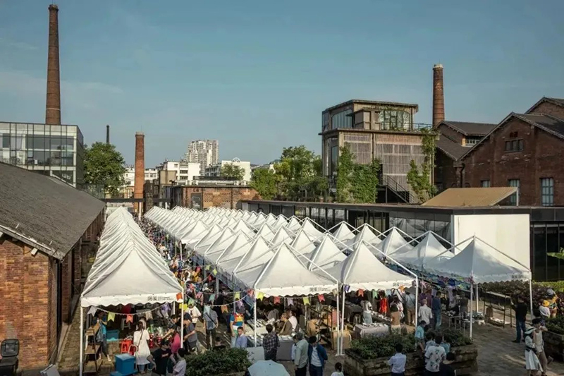 邑空間利用上世紀50年代老廠房改建,約3000平米,近百個鋪位,定期從國內外雙創青年和陶溪川創意集市中精選有代表性的大學生入駐。