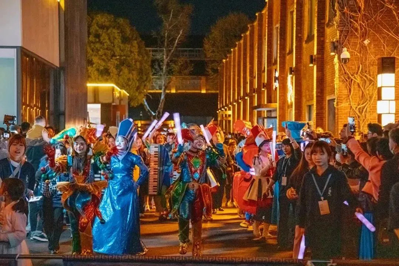 夜幕徐徐降臨,華燈初起,鳳凰山下的陶溪川文創街區被燈光勾勒出優美的金色線條,胡桃里的音樂飄搖,人流不息,一派青春活力。